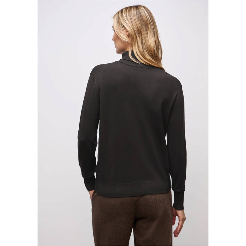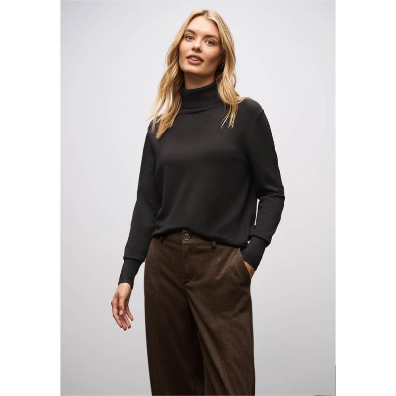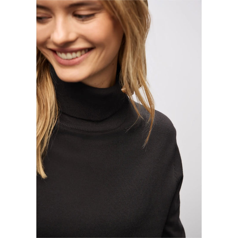 Street One pooloneule. Keveä pooloneule pehmoisessa viskoosilaadussa. Neuleessa korkea poolokaulus. Hyvin istuva hieman kavennettu pooloneule ei ole liian paksu vaan se toimii hyvin vaikka jakun alla. Neuleen mitat koossa 38 on rinnnanympärys 98cm, helma 88cm ja pituus 60cm