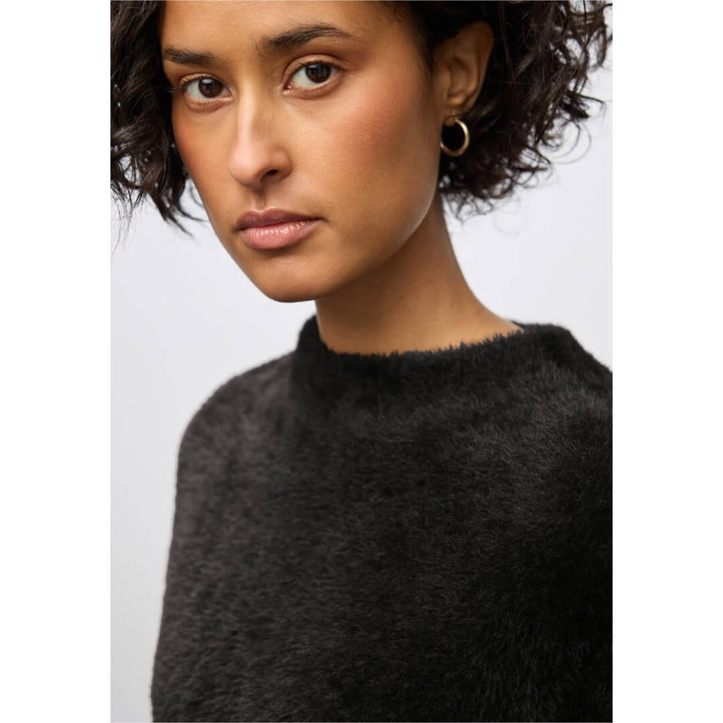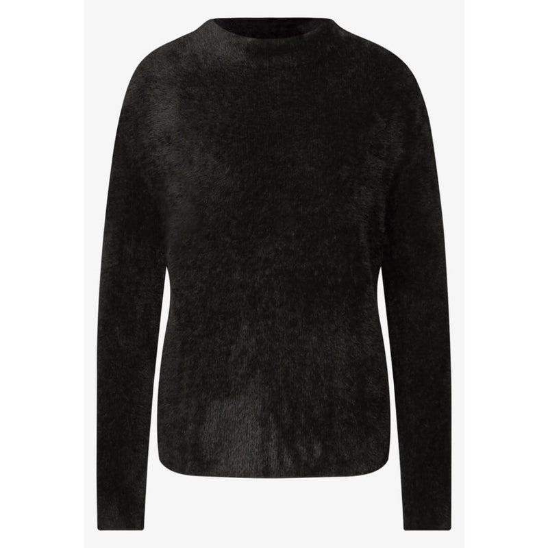 Street One neule. Lämmin ja näyttävä pörröinen neule pystykauluksella. Pehmeä ja hyvin laskeutuva pörröneule on käytössä todella mukava. Neuleen mitat koossa 38 on rinnanympärys 104cm, helma 104cm, ja pituus 60cm