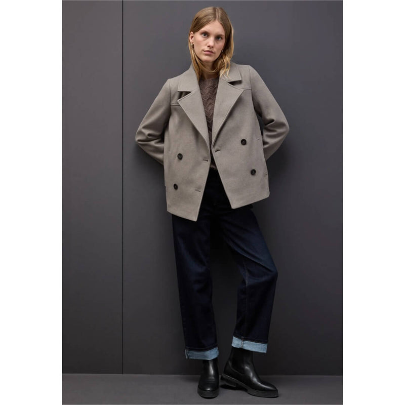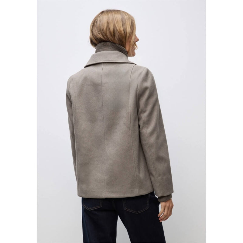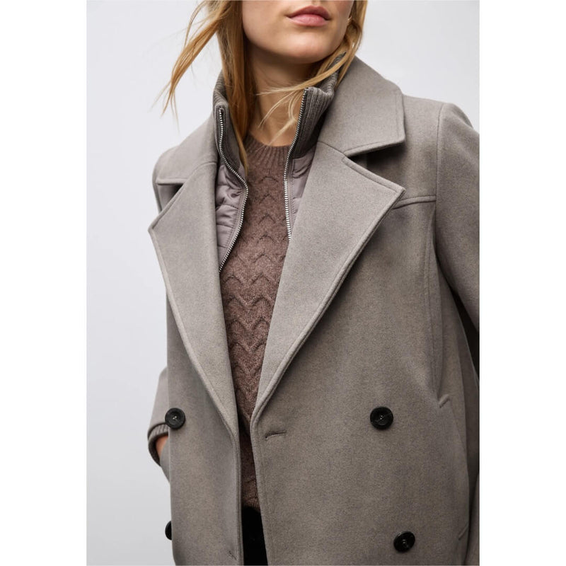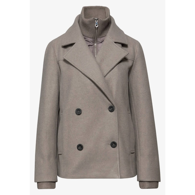 Street One takki. Siisti ja tyylikäs tuplakaulustakki irroitettavalla kauluksella. Takissa on kaksirivinen napistus, reilut kaulukset ja irrtoitettava ylös asti kiinnittyvä vetoketjullinen kaulus. Monikäyttöinen takki kevyellä vanulla.