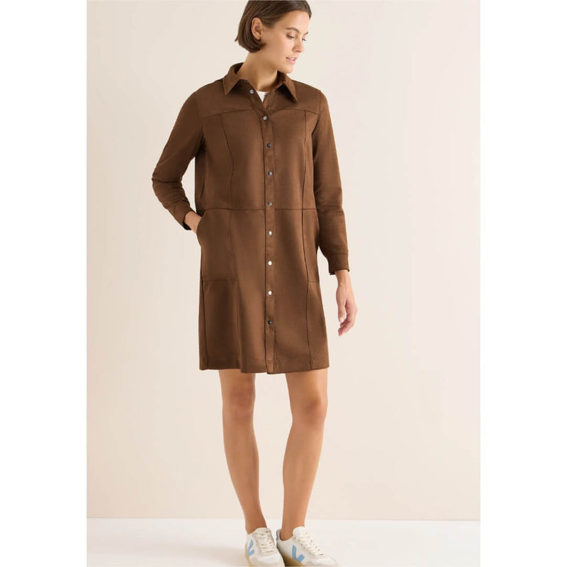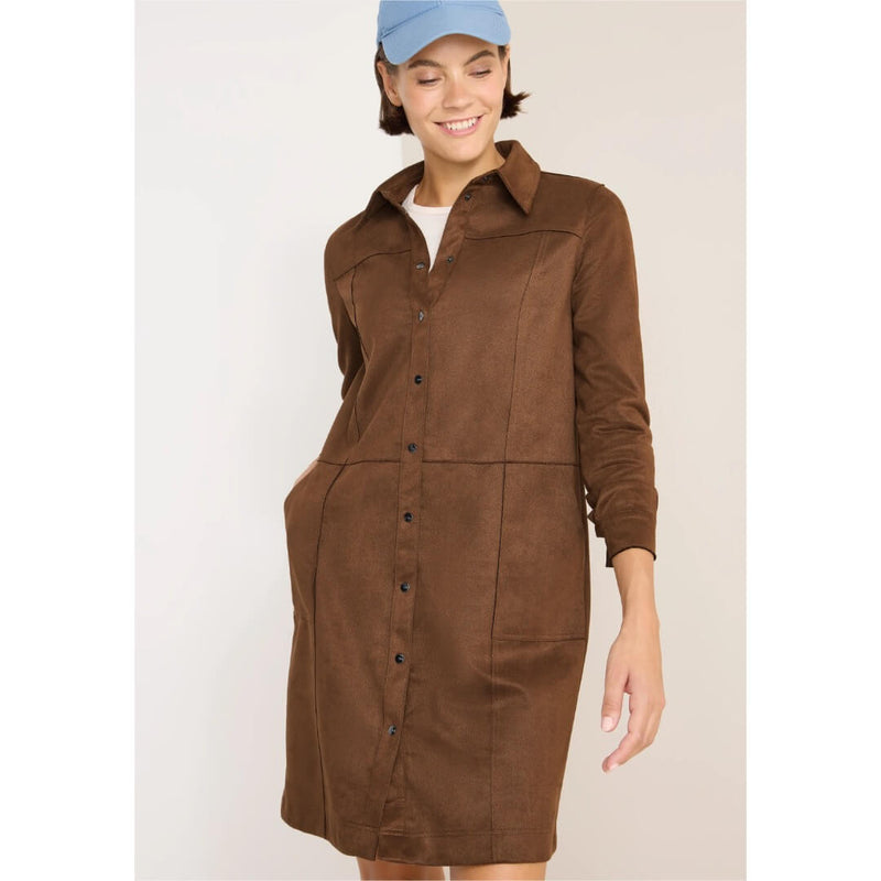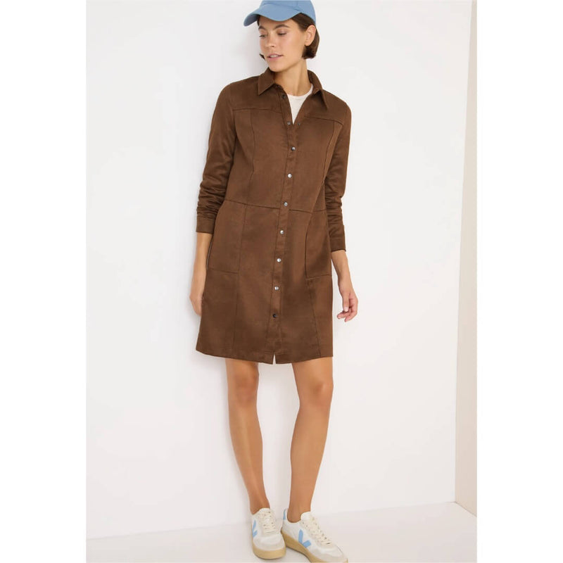 Cecil mekko. Näyttävä paitamekko todella pehmeässä ja hyvin laskeutuvassa säämiskälaadussa. Paidassa hyvä salliva.mitoitus, paitakaulus, napitus alas saakka ja reilut taskut.