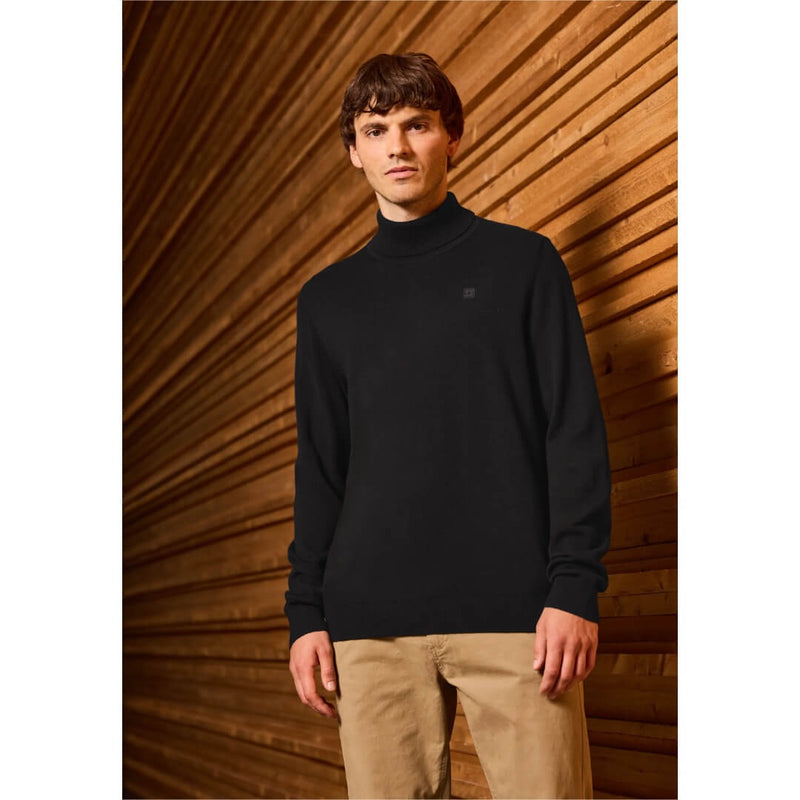 Street One neule. Klassinen neulepoolo korkealla pystykauluksella. Neuleessa hyvä modern fit mitoitus kevyesti kavennettumalli. Lämmin ja hengittävä puuvillalaatu vaikka blazerin alle.