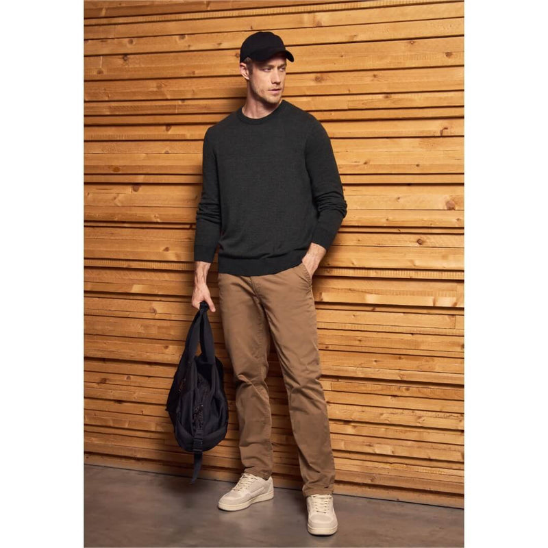 Street One neule. Monikäyttöinen o-aukkoinen neule miellyttävän keveässä puuvillalaadussa. Neuleessa ryhdikäs kaulus ja hyvä kevyesti kavennettu aikuisen miehen modern fit mitoitus. Paidan mitat koossa M on rinnanympärys 116cm, helma 108cm ja pituus 70cm