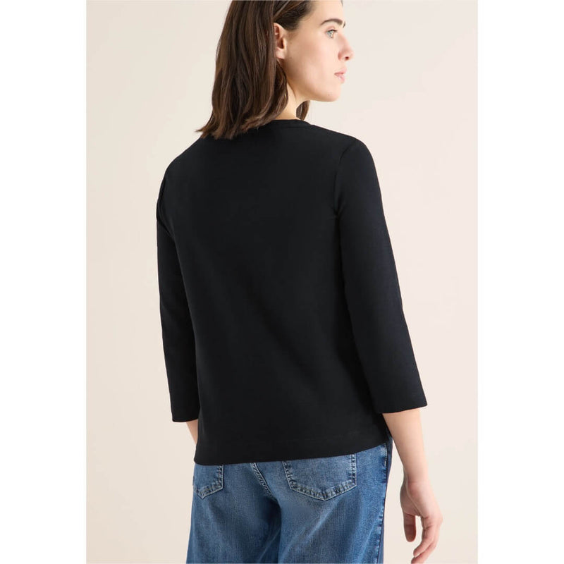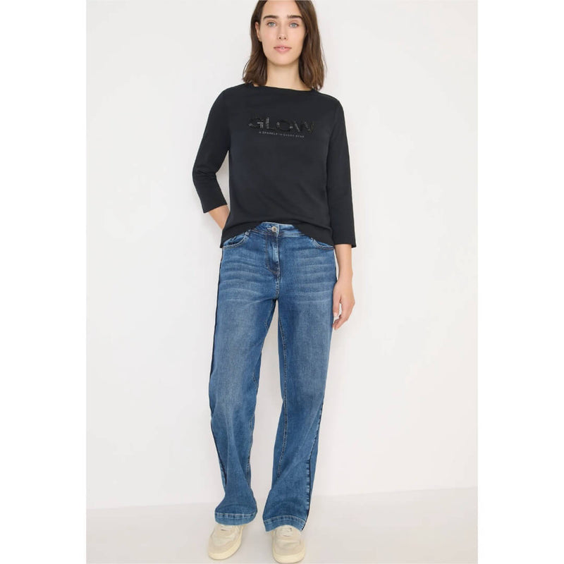 Cecil paita. Pehmeä ja joustava trikoopaita 3/4 mittaisilla hihoilla. Paidassa hyvä salliva mitoitus, näyttävä koriste etuosassa ja vajaamittainen 3/4 hiha. Paidan mitat koossa M on rinnanympärys 109cm, helma 108cm ja pituus 64cm