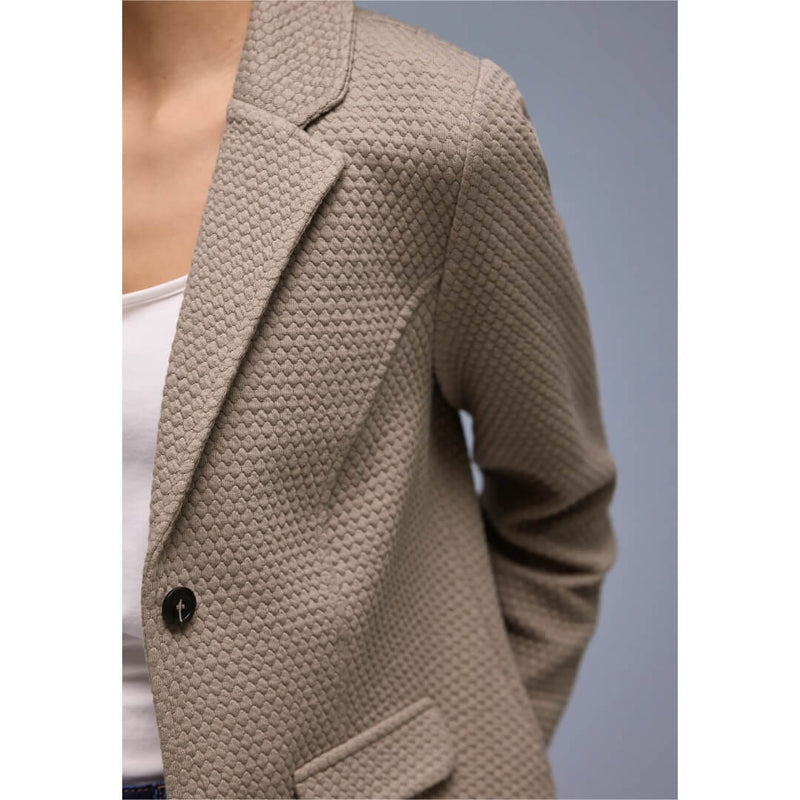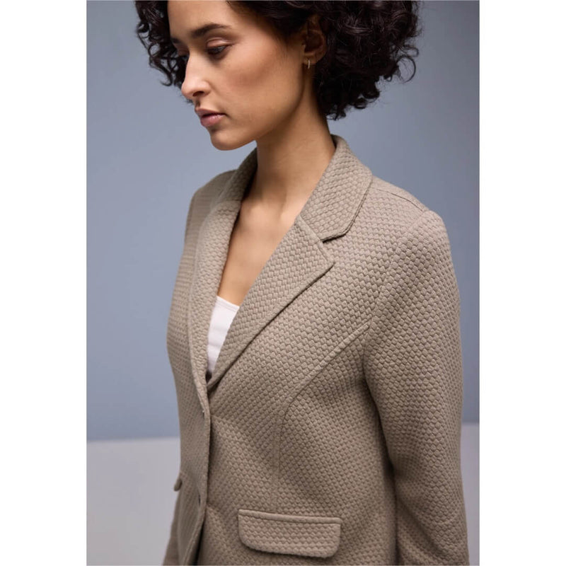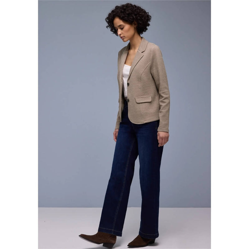 Street One jakku. Siisti struktuuripintainen jakku joustavassa jerseylaadussa. Monikäyttöinen jakku on siisti, mutta rento moneen menoon. Jakun mitat koossa 38 on rinnanympärys 98cm, helma 105cm, ja pituus 62cm