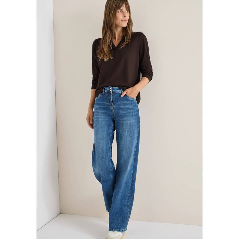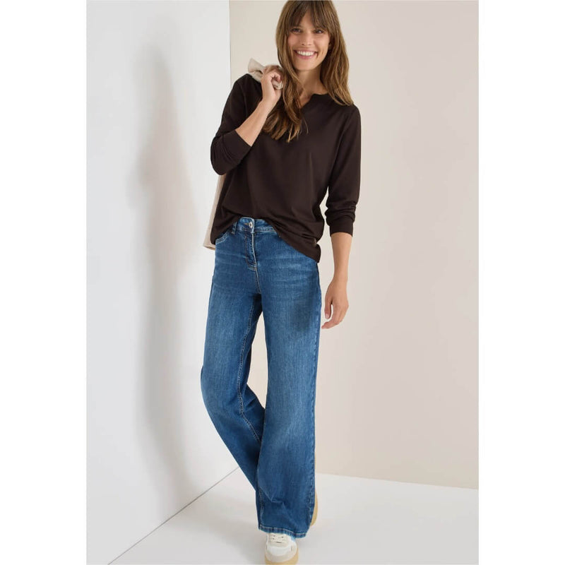 Cecil paita. Monikäyttöinen trikoopaita miellyttävän pehmeässä ja joustavassa puuvilla-modaalilaadussa. Paidassa v-aukkoinen pääntie ja pitkät hihat. Paidan mitat koossa M on rinnnanympärys 109cm, helma 108cm ja pituus 64cm
