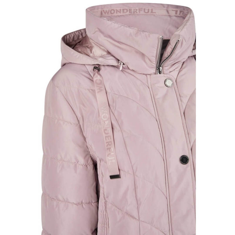 Lebek takki. Lämmin topptakki hempeässä vanharosan sävyssä. Takissa keveysti kavennettu mitoitus, reilu irroitettava huppu ja hieman korkeampi kaulus joka suojaa upeasti syksyn viimalta. Takin sivuilla joustavat rypytykset jotka tuovat käyttömukavuutta