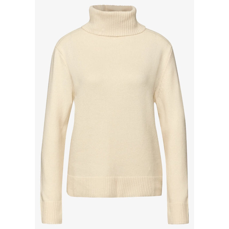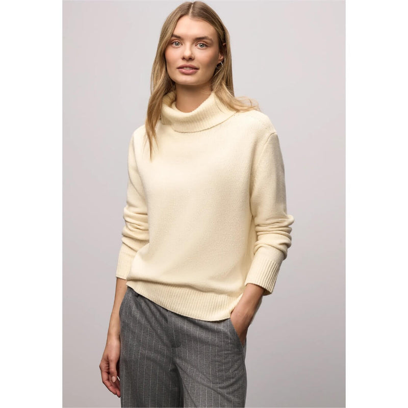 Street One neule. Lämmin neule näyttävän reilulla taitettavalla poolokauluksella. Pehmeä ja miellyttävä neule myös juhlavampaan menoon. Neuleen mitat koossa 38 on rinnanympärys 108cm, helma 104cm ja pituus 60cm