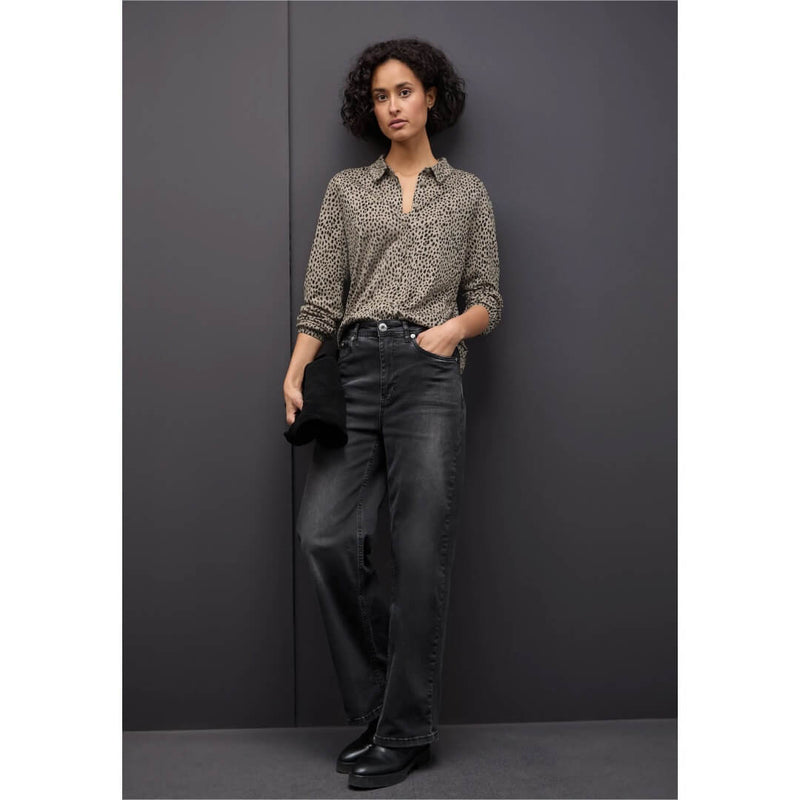 Street One paita. Todella pehmeä ja joustava kauluksellinen kuosipaita. Miellyttävässä modaalilaatuisessa paidassa helmasssa nyörillinen kirirstys, näyttävä eläinkuosi ja napit ylhäältä alas. Paidan mitat koossa 38 rinnanympärys 102cm ja helma 106cm