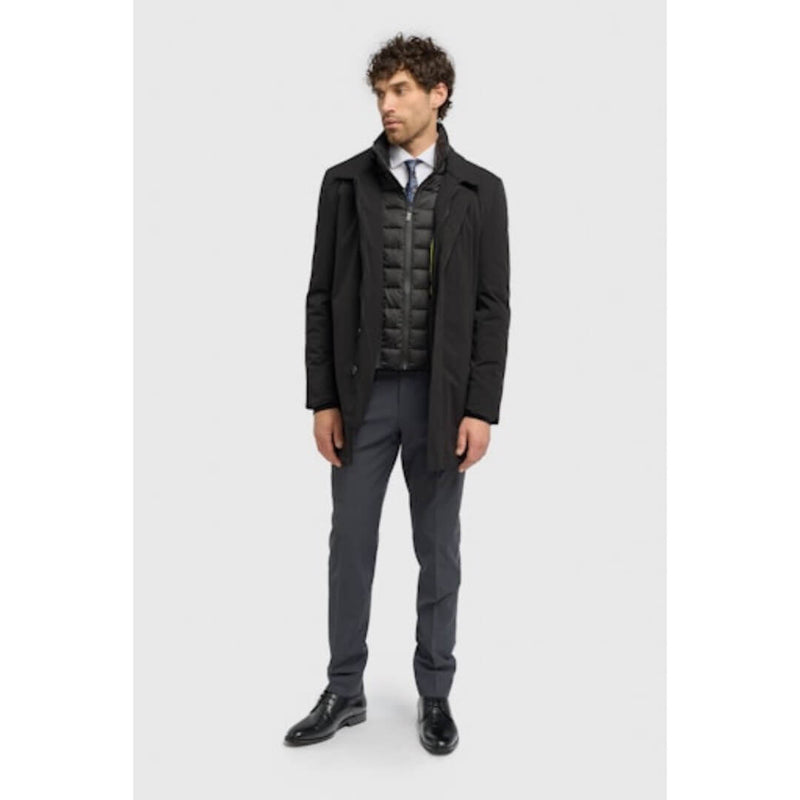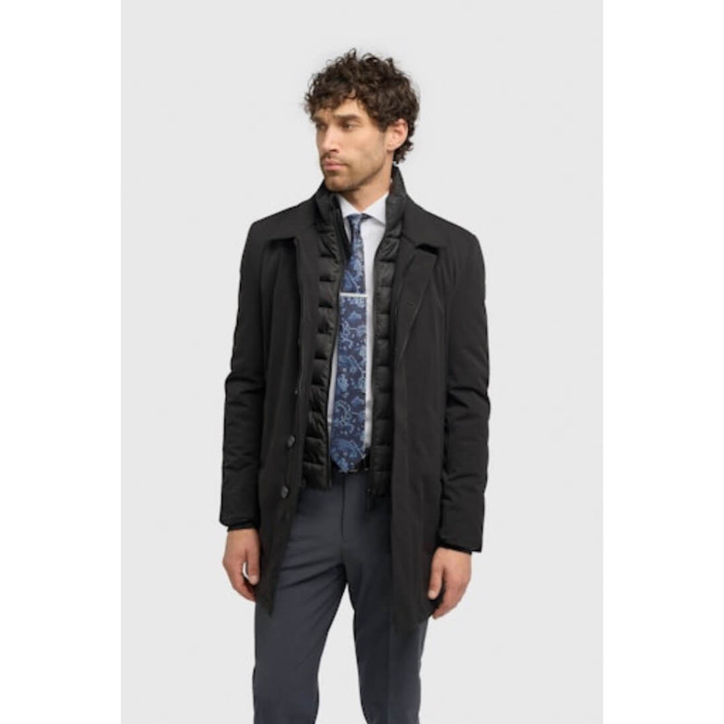 House of Cavani takki. Kevyesti topattu kapealinjainen slim fit takki näyttävällä tuplakauluksella. Hyvin istuva siisti säänkestävä takki irroitettavalla kauluksella. Piilonapitus