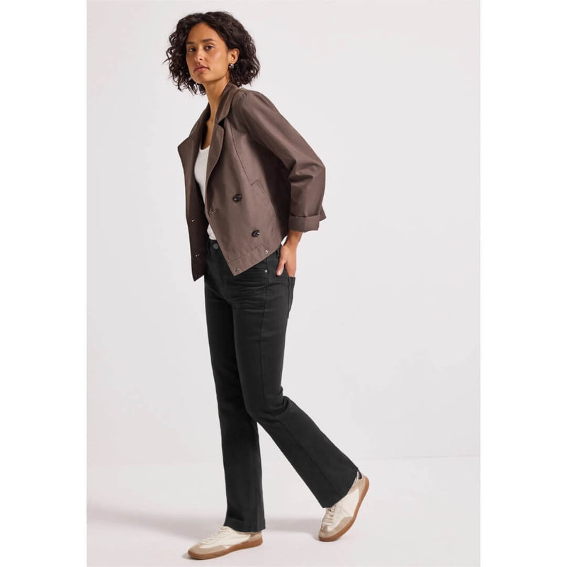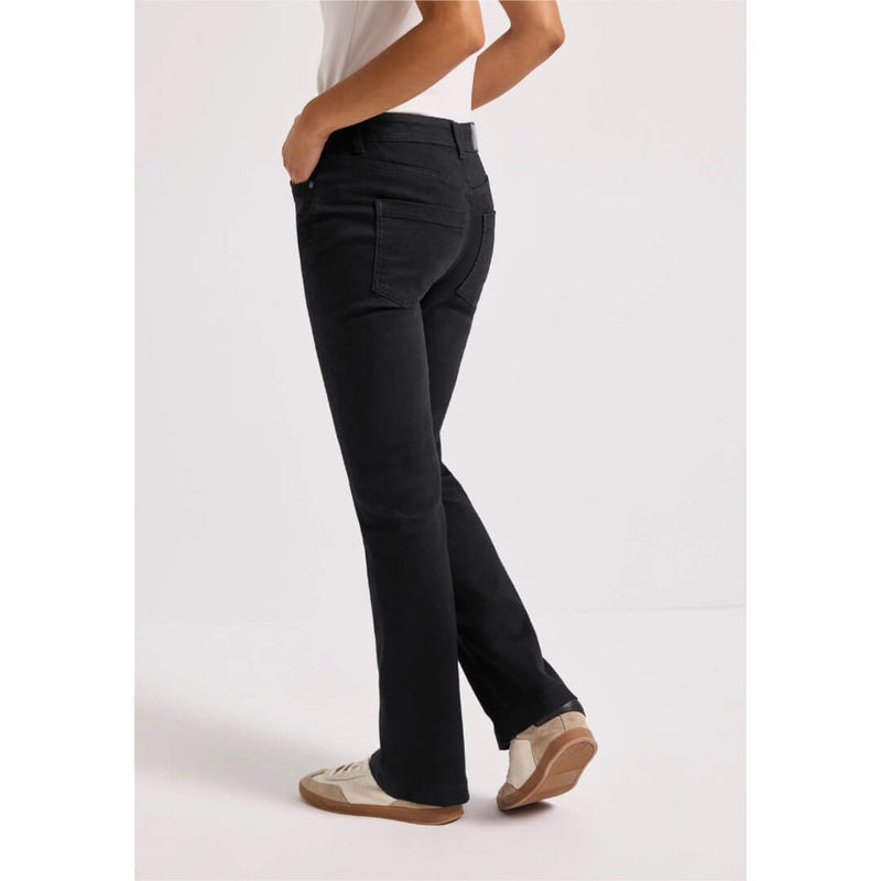 Street One farkku. Muodikas bootcut-farkku pehmeässä ja joustavassa stretch-laadussa. Farkussa korkea vyötärö, levenevä bootcut-lahje ja siisti musta farkku.