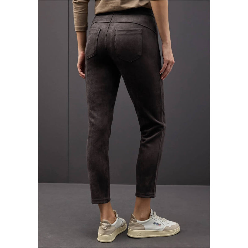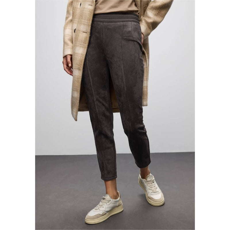 Street One housu. Siisti samettihousu upeassa pesumokkalaadussa korkealla joustovyötäröllä ja kapealla vajaamittaisella 7/8-lahkeella. Housussa todella pehmeä ja joustava laatu